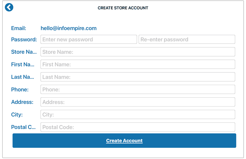 Now a page “Create Store Account” will appear. Here you need to fill in the information about yourself: Email, Password, Store Name, First Name, Last Name, Phone, Address, City, and Postal Code. After you have done all the steps, you need to press the “Create Account” button at the very bottom.